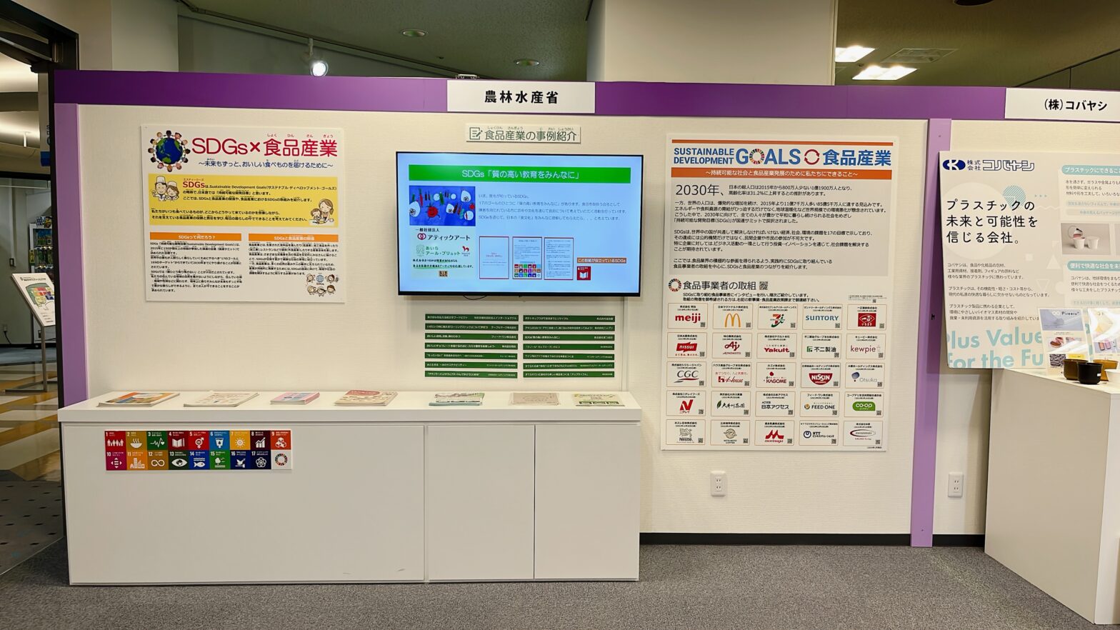 弊社環境取組みに関する展示、万博出展と関連づけた展示