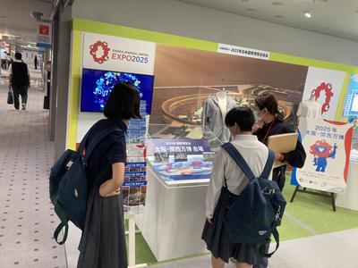 館内には、SDGsに取り組まれている企業展示が多数あることをご紹介し、SDGsの啓発展示、社会貢献活動への取り組み、事業そのものがSDGsの達成に関わっている事を説明しました。後日、来場されます公益社団法人2025年日本国際博覧会協会でもSDGsの取り組みに繋がる発見、体験をして頂きたいことをお伝えしました。