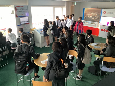 積水化学工業株式会社では、ペロブスカイト太陽光電池について、関心をもって説明を聞かれていました。